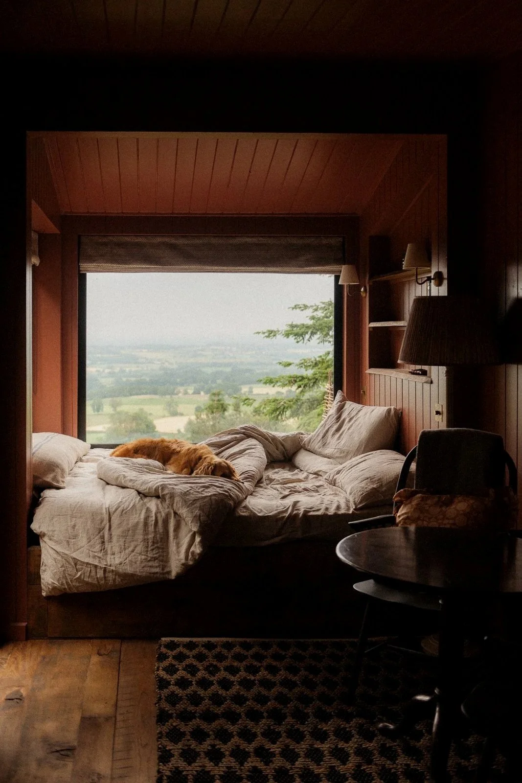Four cabins set within a 4,500-acre estate, this location is defined by rolling hills and ancient woodland. Wake to birdsong with views stretching towards Clee Hill. Step straight onto gentle trails through fields and woodland, or wander five minutes into Ludlow, a medieval market town known for its historic pubs, great restaurants and castle ruins.