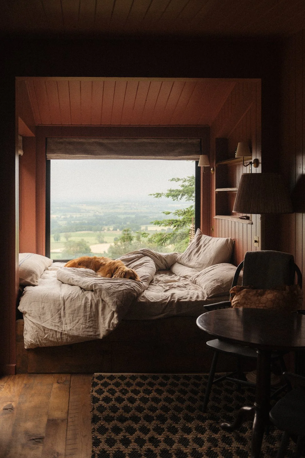 Four cabins set within a 4,500-acre estate, this location is defined by rolling hills and ancient woodland. Wake to birdsong with views stretching towards Clee Hill. Step straight onto gentle trails through fields and woodland, or wander five minutes into Ludlow, a medieval market town known for its historic pubs, great restaurants and castle ruins.
